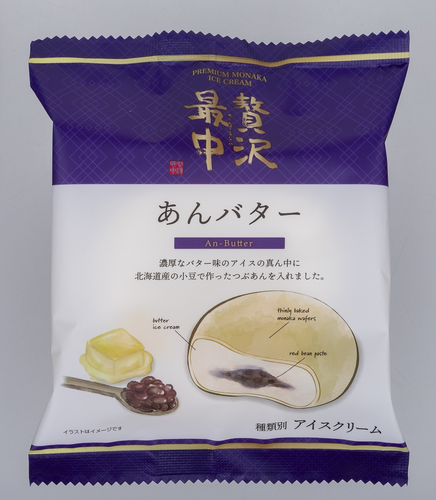 中身が分かるよう、モナカと素材の